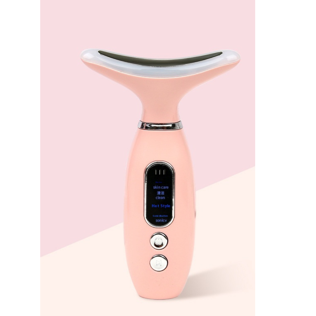Technologie avancée : Lumière rouge LED, chaleur douce et vibration sonique pour stimuler le collagène et lisser la peau.